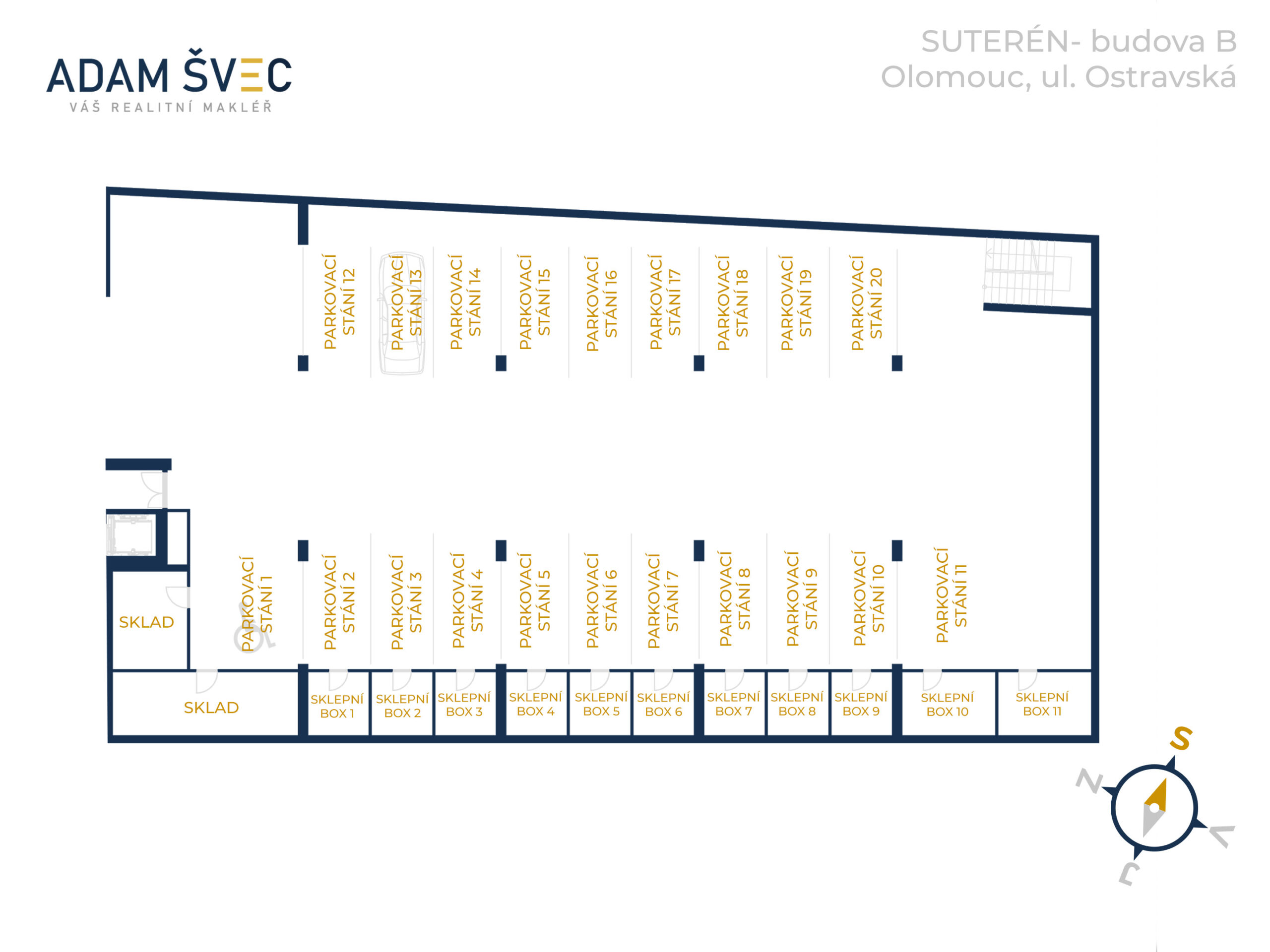B. SUTERÉN Sklad - větší 17,3 1 730,00 Kč VOLNÝ