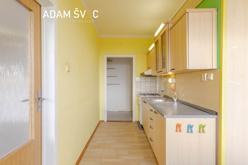 Interiér je v původním stavu, takže počítejte s rekonstrukcí. Na druhou stranu máte možnost vytvořit si nové bydlení přesně podle svých představ od kuchyně přes koupelnu až po podlahy a elektřinu. Výsledkem bude byt, který může sloužit další generaci.